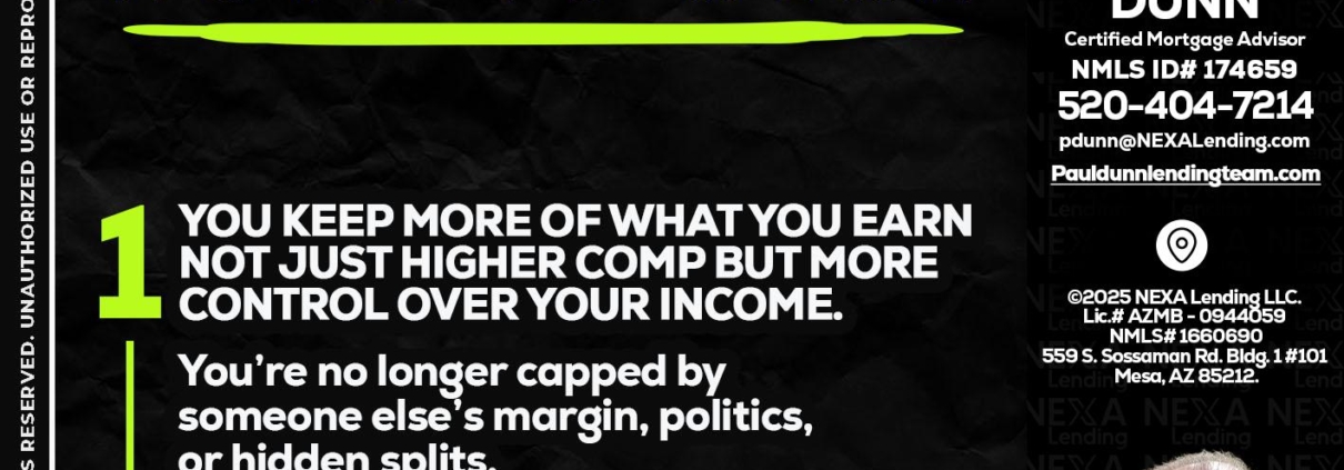 7 THINGS (1) - Paul Dunn -Certified Mortgage AdvisorHi, my name is Paul Dunn. I’m a Loan Officer with NEXA Lending LLC., offering personalized mortgage solutions, fast customized quotes, great rates and service with integrity.