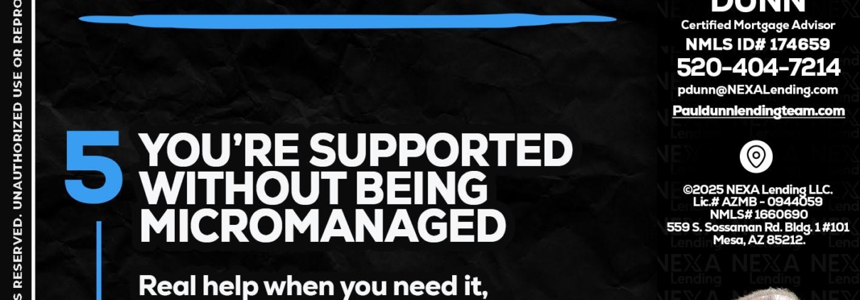 Hi, my name is Paul Dunn. I’m a Loan Officer with NEXA Lending LLC., offering personalized mortgage solutions, fast customized quotes, great rates and service with integrity.