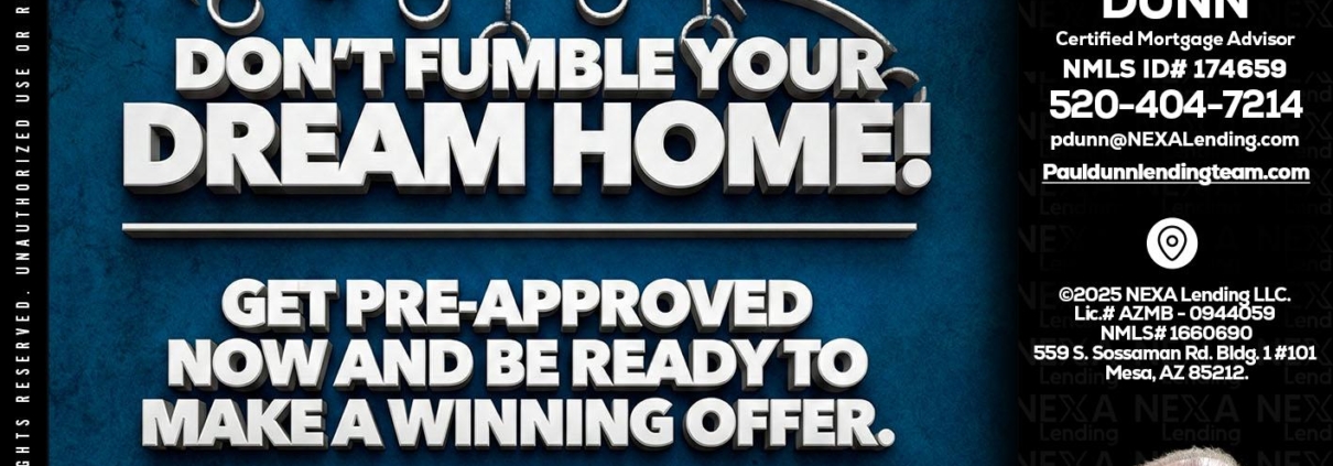 dont fumble - Paul Dunn -Certified Mortgage AdvisorHi, my name is Paul Dunn. I’m a Loan Officer with NEXA Lending LLC., offering personalized mortgage solutions, fast customized quotes, great rates and service with integrity.