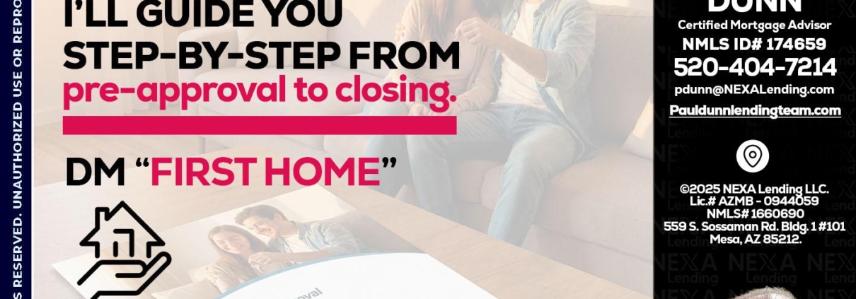 Hi, my name is Paul Dunn. I’m a Loan Officer with NEXA Lending LLC., offering personalized mortgage solutions, fast customized quotes, great rates and service with integrity.