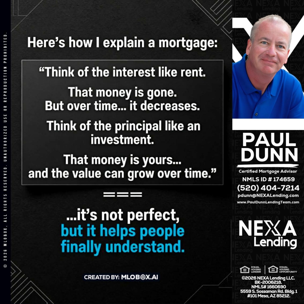 Hi, my name is Paul Dunn. I’m a Loan Officer with NEXA Lending LLC., offering personalized mortgage solutions, fast customized quotes, great rates and service with integrity.