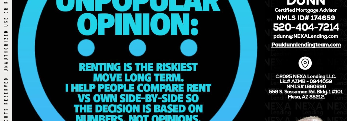 unpopular opinion - Paul Dunn -Certified Mortgage AdvisorHi, my name is Paul Dunn. I’m a Loan Officer with NEXA Lending LLC., offering personalized mortgage solutions, fast customized quotes, great rates and service with integrity.