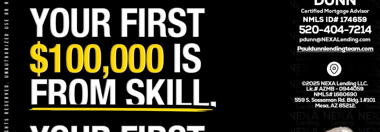 YOUR FIRST $1000 - Paul Dunn -Certified Mortgage AdvisorHi, my name is Paul Dunn. I’m a Loan Officer with NEXA Lending LLC., offering personalized mortgage solutions, fast customized quotes, great rates and service with integrity.